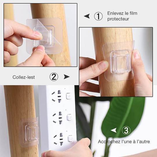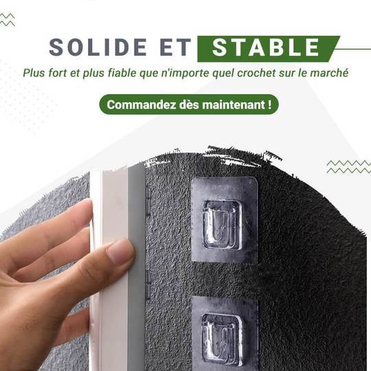 - 1. Avant d'installer le crochet adhésif, assurez-vous que la surface est propre, sèche, exempte de poussière et d'huile, et essuyez-la d'abord.